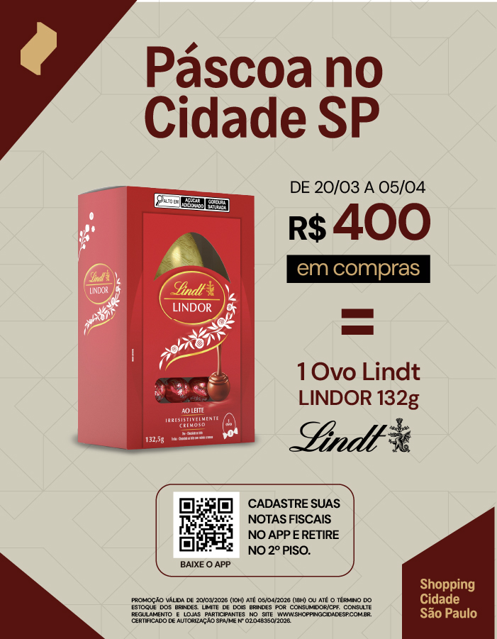 De 20/03 a 05/04, R$400 em compras = 1 Ovo de Páscoa LINDOR Lindt (132g)